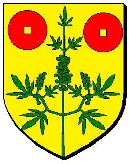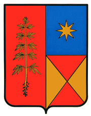 | Virlet (France - Puy-de-Dôme) deux branches de chanvre sont posées en sautoir au cœur de l'écu |