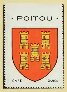Pour débuter la série, je vous propose de découvrir les premiers feuillets , à commencer par la région où j'ai passé mon enfance : les Charentes.... puis le Poitou et le Limousin ( tous extraits de l'Album n° IV ) - Chaque page rassemble les blasons de neuf villes les plus représentatives de chaque département. Les régions administratives actuelles n'existaient pas encore , et ce sont donc les armoiries des anciennes provinces qui débutent les chapitres. Je n'ai pas mis le texte des pages intermédiaires qui donne une description succincte de chaque ville.