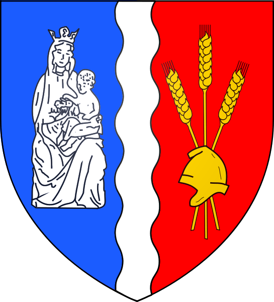 Pour terminer voici l'association exceptionnelle d'un emblème de la République, appuyé par les couleurs bleu-blanc-rouge du drapeau, et d'une Vierge à l'Enfant, symbole on ne peut plus religieux ! Robespierre, Marat, Desmoulins, Saint-Just et Danton doivent se retourner dans la tombe ! L'explication est simple : l'église du village, qui appartient à l'État comme le stipule la loi de 1905, est dotée d'une belle statue de la Vierge à l'Enfant qu'on date du XIVe siècle et dont la commune est très fière. C'est donc le patrimoine historique que l'on honore et non pas le symbole chrétien !