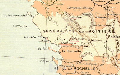 Voici l'extrait d'une carte datant de la fin du XVIIIe s. , donc postérieure d'un siècle, mais dont les limites administratives ont peu évolué.