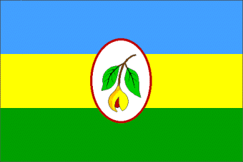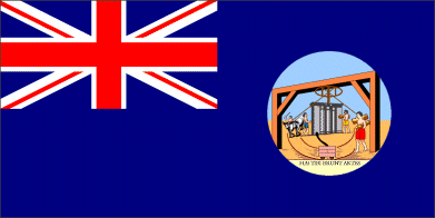 | 3e drapeau du territoire avant l'Indépendance (1967-1974) on retrouve la noix de muscade symbole du pays. |