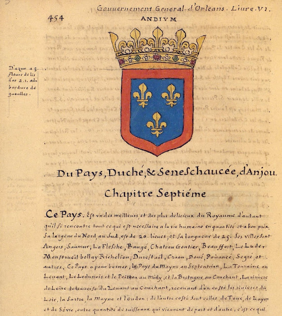 Ci-dessus, voici le blason totalement inventé par Charles-René d'Hozier pour représenter la province d'Anjou : pour l'anecdote....
