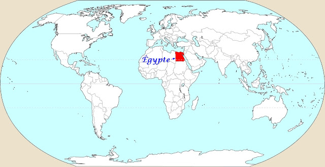 Le nom occidental de l' Égypte vient du latin Aegyptus, qui découle lui-même du nom en moyen égyptien de la ville de Memphis "Hout-ka-Ptah" (la Demeure du Ka de Ptah), en passant par le grec ancien. Ptah était un dieu de l'Égypte antique. En arabe, son nom est Miṣr. L'actuelle Égypte occupe l'espace géographique qui fut naguère globalement celui de l'Égypte antique. Ce vaste pays est composé essentiellement de zones désertiques et la quasi totalité de la population est concentrée dans le bassin du Nil, tout le long de son cours, autour du delta, et sur les côtes, ce qui ne représente que environ 10% de la surface du pays. On notera toutefois que la péninsule du Sinaï se situe géographiquement en Asie, l'Égypte fait donc ainsi partie des rares pays "à cheval" sur deux continents, tels que la Russie ou la Turquie. Inutile de rappeler que l'Égypte a été une des plus grandes et longues en durée des civilisations antiques dont on n'a pas encore tout exploré les vestiges et interprété les écrits, loin s'en faut. Puis le pays a été conquis et colonisé par tellement d'autres peuples : perses, grecs, romains, turcs, arabes, français, britanniques. Le retour à l'indépendance ne sera effectif qu'en 1936 avec une monarchie qui finira par être remplacée par une république en 1952. Depuis janvier 2011, l'Égypte vit une période trouble avec des révoltes populaires, destitution et jugement des anciens dirigeants, montée de l'islamisme radical et tout récemment un coup d'état militaire.- Les armoiries actuelles de l'Égypte datent de 1984, mais ont été élaborées initialement en 1958 (voir historique, plus bas). Elles montrent un écusson tiercé en pal de gueules, d'argent et de sable, les couleurs du drapeau national. Il est soutenu par l'aigle de Saladin d'argent bordée d'or, la tête tournée vers sa droite et tenant dans ses serres un parchemin du même avec l'inscription en arabe " جمهورية مصر العربية " (Gumhuriyyat Miṣr al-ʿArabiyya / République arabe d'Égypte). Il existe une autre version officielle : or et sable pour l'aigle (ci-dessus) et lorsqu'il est sur le drapeau du pays, c'est encore une version différente des armoiries avec uniquement les couleurs or et argent (ci-dessous, à droite). L'aigle comme symbole de Saladin est contesté par les archéologues et les historiens. Le symbole d'un aigle a été trouvé sur le mur occidental de la citadelle du Caire (construit par Saladin), et ainsi considéré par beaucoup pour être son symbole personnel. Il y a cependant, peu de preuves pour défendre cette proposition. De fait, il a ensuite été adopté comme symbole fort du nationalisme arabe par l'Irak, la Palestine et le Yémen (et autrefois aussi par la Libye), partageant cette notoriété avec le faucon de Quraych des bédouins.