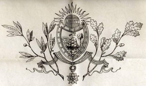 | gravure extraire d'un diplôme pour "the Order of African Redemption" (1879) |