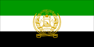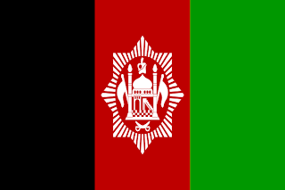 | drapeau de l'État islamique transitoire d'Afghanistan (2002-2004) on retrouve le drapeau tricolore à bande verticales et l'emblème à la mosquée abandonné depuis 1974 |