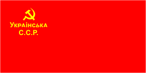 | autres drapeaux de la République socialiste soviétique (R.S.S) d'Ukraine, composante de la fédération de l'U.R.S.S à gauche , de 1945 à 1949, à droite de 1949 à 1991 |