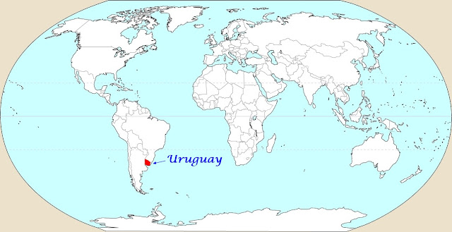 Le nom de l'Uruguay qui est aussi celui du fleuve frontalier, le río Uruguay vient d'un mot de la langue guarani. Sans certitude, car il y a d'autre versions, on pense que ce nom désigne un petit oiseau nommé "el urú "qui vit sur les rives du fleuve Uruguay (qui signifie lui-même la « rivière du pays de l'urú »). Ce petit pays d'Amérique du Sud a connu une histoire atypique au début du XIXe siècle, quand les Empires espagnols et portugais ont "éclaté". En effet colonisé par les Espagnols depuis 1516, ils en ont fait une province de leur empire dans la Vice-royauté du Río de la Plata. Dédiée à l'élevage du bétail, car sans ressource minérale, ils lui donne le nom de "Banda Oriental" (bande -région- orientale). Avec l'indépendance de l'Argentine en 1816, le territoire, isolé par l'Espagne, et qui n'a pas bénéficié de cette révolution, est rattaché plus tard au Brésil portugais qui avait combattu aux côtés des espagnols, et qui l'annexe. Peu à peu les mouvements indépendantistes s'organisent et en 1825, l'Uruguay déclare son indépendance et tente de se réunir à l'Argentine, qui accepte le principe, mais cela entraîne une longue guerre avec le Brésil, lui-même parvenu à l'indépendance entre temps. Celui-ci, vaincu, finira par reconnaître l’Uruguay indépendant en 1830.- Les armoiries de l’Uruguay ont été adoptée en mai 1929 et n'ont pas bougé depuis, c'est une vraie performance, si l'on ne tient pas compte des essais artistiques, qui ont eu cours selon les modes et les époques. De plus, héraldiquement parlant, il est parfaitement "blasonnable" (pardon pour ce néologisme !), ce qui n'est pas toujours le cas avec les armoiries sud-américaines ! Donc , nous avons un écu ovale, écartelé, au premier d'azur à la balance d'or, au deuxième : d'argent au Cerro (mont) de sinople, sommé d'une tour (ou un château) d'argent (ou au naturel) avec un chemin au naturel accédant au sommet, soutenu par cinq filets ondés d'azur ; au troisième d'argent au cheval de sable, au quatrième d'azur au bœuf d'or. La balance est le symbole de l'égalité et de la justice ; le mont représente la colline de Montevideo au naturel, avec la forteresse qui la couronne. A son pied, c'est le Río de la Plata qui est figuré par ces lignes ondées; le cheval noir alezan est le symbole de la liberté; le bœuf est là comme personnification de l'abondance. L'écu est timbré du Soleil de Mai d'or, naissant, et soutenu par une branche d'olivier à dextre, une branche de laurier à senestre, au naturel, croisées en pointe en sautoir, liées par un ruban noué d'azur. Le Soleil de Mai (el Sol de Mayo) modèle uruguayen, qui est représenté tout seul en haut de cette page, a la même symbolique de celui de l'Argentine , mais il en diffère par le nombre de rayons : 16 au lieu de 32.