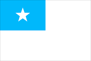 En-dessous nous voyons une particularité unique de ce pays : un drapeau spécial pour les bâtiments municipaux, c'est le drapeau civil avec un cercle constitué de 19 étoiles blanches (une par province) , au centre de la bande bleue.