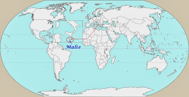 La République de Malte est un État insulaire, qui se compose de huit îles, dont quatre sont habitées, situé entre la mer Méditerranée orientale et occidentale à 93 kilomètres de la Sicile. C'est le plus petit État de l'Union européenne et c'est aussi, mis à part les cités-États, le pays le plus dense du monde. Sa localisation stratégique au milieu de la Méditerranée lui a valu les convoitises de nombreuses puissances au cours des siècles. - Les armoiries actuelles de Malte ont été adoptées officiellement par la loi en 1988. Le blason est " parti, d'argent et de gueules , chargé dans le canton supérieur à dextre d'une croix grecque portant l'effigie de saint Georges tuant un dragon, d'argent bordée de gueules (détail ci-dessus) ". Cette scène est représentée au centre de la croix et entourée de la devise nationale en anglais "For Gallantry" ( pour l'héroïsme). Dans la croix apparaissent les initiales du roi George VI du Royaume-Uni (G-VI). Cette croix représente la Croix de Georges, décoration britannique octroyée au peuple maltais pour son comportement durant la Seconde Guerre mondiale et qui, depuis, a été incorporée dans le drapeau et les armoiries de Malte.