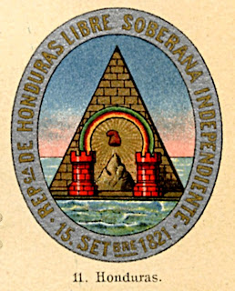 Le Honduras a eu au départ une histoire similaire à celle du Costa Rica (et du Guatemala , voir → ICI) et donc les mêmes emblèmes, en ce qui concerne la période précédant l'indépendance (Capitainerie Générale du Guatemala) et quelques années encore avec la participation du pays à l'Empire du Mexique (1821-1822), puis à la République fédérale d'Amérique centrale (1823-1839).