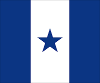 - Le drapeau du Honduras a été créé le 16 Février 1866. Il est basé sur le drapeau des anciennes Provinces-Unies d'Amérique centrale. Il se compose de trois bandes horizontales de taille égale, bleue, blanche, bleue. Au centre de la bande blanche sont cinq étoiles bleues symbolisent les cinq pays qui formaient l'ex-Fédération de l'Amérique centrale et l'idéal de l'union de l'Amérique centrale. Les bandes bleues symbolisent le ciel hondurien, l' idéal généreux et fraternel qui les unit comme la justice, la loyauté, la fraternité, la force, la douceur, le courage, l'océan Atlantique et l'océan Pacifique le long des côtes de l'est et à l'ouest, respectivement. La bande blanche symbolise l'objectif auquel doivent amener les bonnes actions du patriotisme national : la pureté, l'intégrité, la foi, l'obéissance, la paix, la fermeté, la vigilance, la bonté et la nation.