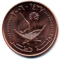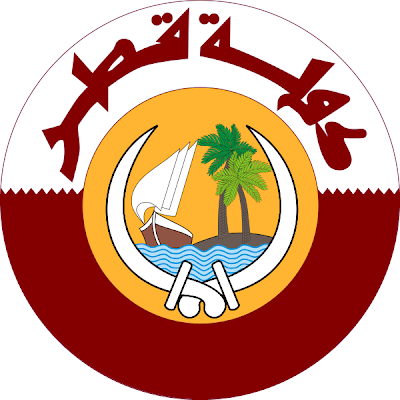 Le Qatar est l'un des nombreux et puissants émirats de la péninsule d'Arabie. Après avoir été dominé par les Perses pendant des milliers d'années puis plus récemment par Bahreïn, les Ottomans ou encore les Britanniques, le Qatar devient un État indépendant le 3 septembre 1971. À la différence de la plupart des émirats voisins, le Qatar a refusé de devenir un membre des Émirats arabes unis ainsi que Bahreïn.- L'emblème du Qatar a été inauguré officiellement en 1976. Il est composé d'un disque d'or chargé de deux sabres liés à leurs bases, entourant un boutre à dextre, navire traditionnel, une île avec deux palmiers à senestre, le tout au naturel, sur une mer formée de burelles ondées d'azur et d'argent. L'emblème est soutenu par un autre disque coupé et dentelé aux couleurs du drapeau national et chargé dans la partie supérieure de la dénomination officielle du pays en arabe : دولة القطر.