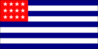 | quelques-uns des drapeaux du Salvador, à gauche avec 12 étoiles en 1869 ; à droite avec 14 étoiles en 1877. |