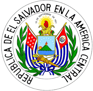 Le Salvador, avec le Belize, sont les seuls états d'Amérique centrale à n'avoir qu'une seule façade maritime, en l’occurrence sur l'océan Pacifique pour le Salvador. Avant l'arrivée des conquistadors espagnols, le royaume de Cuzcatlan était la principale entité politique de la région. Le premier conquistador à découvrir les terres aujourd'hui salvadoriennes est Gil González Dávila qui longeait en 1522 la côte Pacifique de l'Amérique centrale à la recherche d'un passage maritime communicant avec l'Atlantique. En 1535, le territoire, conquis par les frères Pedro et Diego de Alvarado, est intégré à la Nouvelle-Espagne, puis à la Capitainerie générale du Guatemala en 1540. Il est lui-même divisé entre la municipalité (ou Intendance) de San Salvador et la municipalité de Sonsonate. En 1824, la municipalité de Sonsonate et l'Intendance de San Salvador s'unissent pour former l'État du Salvador, membre de la République fédérale d'Amérique centrale. En 1841, l'assemblée constituante proclame la séparation du Salvador de la République fédérale et la création de la République indépendante et souveraine du Salvador. Le Salvador sera le théâtre d'une terrible guerre civile sanglante (plus de 100 000 morts) pendant 12 ans, de 1980 à 1992.- L'emblème d'El Salvador a été adopté par un décret-loi daté du 17 mai 1912. Il a été conçu par le dessinateur salvadorien Rafael Barraza Rodriguez, qui avait gagné un concours organisé par le Ministère de la guerre et de la marine. Comme celui du Nicaragua, il est basé sur l'emblème qui appartenait aux Provinces-Unies d'Amérique centrale (voir historique, plus bas). Il est composé d'un triangle équilatéral bordé d'or, chacun de ses angles représentant les trois branches du gouvernement (législatif, exécutif et judiciaire). Dans la partie inférieure, on peut voir une cordillère composée de cinq volcans entre deux océans qui représentent l'unité et la fraternité des cinq pays d'Amérique centrale, les océans représentent la mer des Caraïbes (symboliquement) et l'océan Pacifique, tout en sachant que le pays n'est bordé que par l'Océan Pacifique. Un bonnet phrygien illumine la scène avec des rayons de lumière représentant la liberté, et les idéaux du peuple salvadorien. La légende "15 de septiembre de 1821" est date de l'indépendance de l'Amérique centrale. Un arc en ciel à sept bandes surmonte l'ensemble et représente la paix. Un listel contient la devise nationale : "Dios, Unión, Libertad" est placé sous la base du triangle. Cinq drapeaux du Salvador, soutiennent le triangle et représentent les cinq nations résultant de l'Indépendance de l'Amérique centrale. Deux branches de laurier entrelacées avec un ruban bleu et blanc : composé de quatorze segments qui représentent les quatorze régions qui composent administrativement El Salvador entourent l'ensemble. Et enfin la dénomination "República de El Salvador en la América Central" est placée autour du tout.