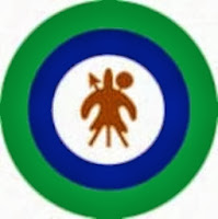 | Cimier des armoiries du Basutoland avec bouclier, armes et sceptre Basuto. et la couronne britannique sur le tout. |