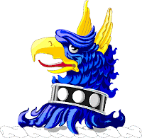 Timbré d'un tortil d'argent et d'azur surmonté d'un vaisseau trois-mâts voguant sur les flots, au naturel,en guise de cimier.