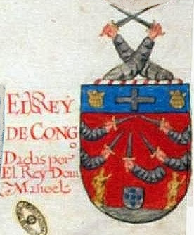 | armoiries du Roi du Congo ( Mani Congo) fragment d'une planche héraldique portugaise attribuée à Francisco Coelho : “Tesouro da Nobreza” (1675) Bibliotheque Torre do Tombo- Lisbonne |