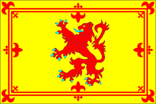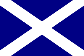 - Le drapeau national d'Écosse porte une croix de Saint André blanche sur un fond bleu. En langage héraldique, il se blasonne « D'azur au sautoir d'argent ». Ce drapeau est l'un des plus vieux au monde, daté traditionnellement du IXe siècle, et un des plus anciens drapeaux nationaux encore en usage. L'ancien drapeau royal lui, porte le blason ancien de l'Écosse (ci-dessous à droite). Et au second rang, nous voyons le pavillon royal actuel, qui n'est hissé sur le mât que lorsque la Reine est présente dans le pays d'Écosse. Il se différencie du pavillon royal du Royaume-Uni par l'inversion des quartiers 1 et 4 avec le quartier n°2.