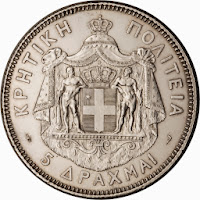 La Crète est la cinquième plus grande île de la Mer Méditerranée. Elle s'appelait autrefois île de Candie et les Vénitiens y avaient fondé un petit royaume au Moyen-âge. Elle est rattachée à la Grèce depuis 1913 dont elle est une des treize périphéries (régions administratives). Nous fêtons donc cette année le centenaire de son rattachement à la Grèce. La Crète a été peuplée depuis très longtemps, on parle de 130 000 ans, et elle est le berceau de la civilisation minoenne, disparue subitement vers 1200 av. J.C. et dont Cnossos est le cœur et le site archéologique le plus important. Elle a été colonisée après la période hellénistique antique, par les Romains, les Byzantins, les Arabes, les Vénitiens et les Ottomans. On sait moins que la Crète a eu une courte période d'indépendance après s'être libérée de la tutelle de l'Empire ottoman entre 1898 et 1913 où donc elle a rejoint la Grèce, après que cette union naturelle ( l'Énosis) ait été contrariée par la politique des puissances occidentales et les guerres balkaniques.- Voici différents emblèmes officieux (le premier) et plus officiels de la "Périphérie de Crète". Le premier se rapporte visiblement à la légende du Minotaure . Le second montre un olivier, culture principale de la région et le troisième reprend les armoiries nationales de la Grèce. Il faut bien admettre que la Grèce est une des rares nations européennes où la discipline de l'héraldique est peu utilisée dans la symbolique que ce soit celle des villes ou celle des territoires.