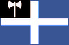 - Le drapeau officiel de la Crète est celui de la Grèce. Toutefois on peut trouver sur certains sites web des drapeaux locaux certainement non officiels, comme ceux ci-dessous, toujours à la base formés du drapeau grec original bleu avec la croix blanche, chargé du contour de l'île (à gauche , peut-être des courants nationalistes) ou avec un canton noir contenant une hache d'armes blanche (à gauche, origine non contrôlée, source : 1900.ethnia.org).