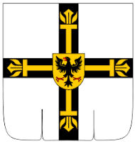 | emblèmes : blason et bannières de l'Ordre des Chevaliers Teutoniques qui absorbe l'Ordre Livonien et va installer un puissant État de 1224 à 1525 sur toute la côte de Baltique de la Pologne à l'Estonie actuelles. Cet État germanique sera la préfiguration de la future et puissante Prusse. |