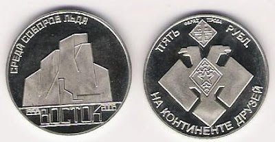 | emblème du Programme Antarctique de la Russie - monnaie commémorative pour la Station de Vostok |