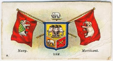 | premiers drapeaux du Royaume du Siam avec le début de la dynastie Chakri (toujours en place) à partir de 1782 |
