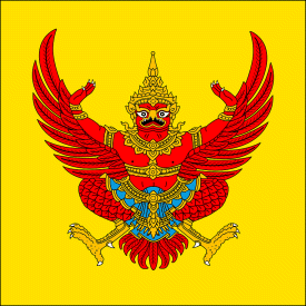 Garuda est une figure mythique dans l'hindouisme et dans le bouddhisme. Dans le blason thaïlandais et sur les étendards royaux (voir ci-dessous), il apparaît de gueules et portant une couronne. Il possède un torse d'homme, des bras humains, des plumes et des pattes d'oiseau. Historiquement la créature mythologique avait été utilisée comme un symbole de la royauté en Thaïlande depuis des siècles. Le Garuda est représenté depuis longtemps sur les sceaux royaux et par le Gouvernement de la Thaïlande pour authentifier les documents officiels et désormais comme emblème national. Il existe même une version du Garuda aux ailes largement déployées (ci-dessous) employée comme label et garantie d'approbation royale pour différents organismes ou entreprises thaïlandaises. Enfin, pour ceux ou celles que cette figure intéresse, au niveau national , c'est aussi l'emblème de l'Indonésie , présenté sous une autre forme, plus occidentale.