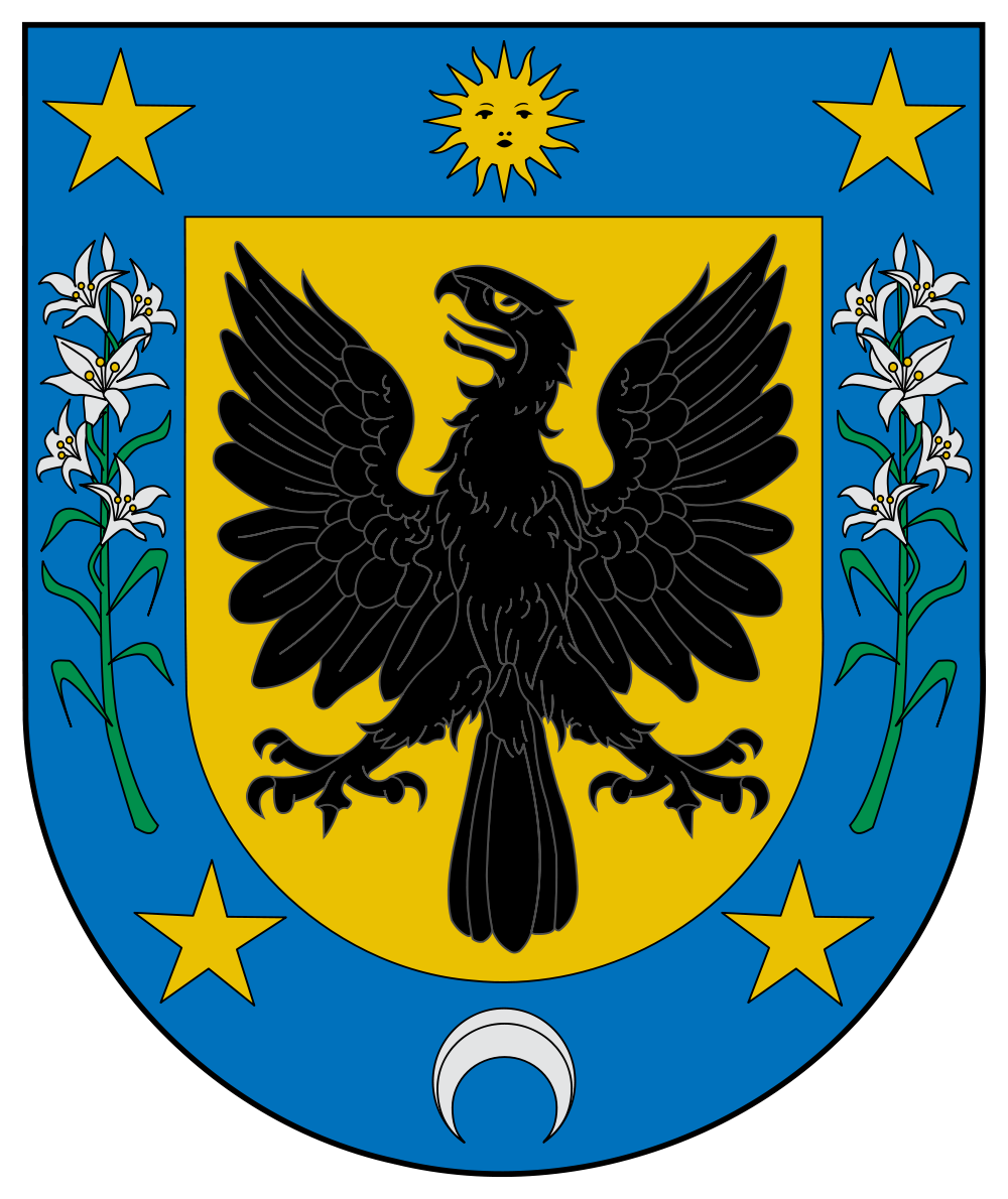 | le blason montre un bijou (trapelacucha) et des motifs traditionnels des indiens Mapuche |