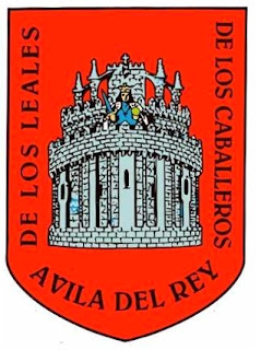 Écu classique, de gueules au chevet fortifié de la cathédrale d'Avila, d'argent, maçonné de sable ; au premier niveau crénelé, le buste d'un roi enfant de carnation, habillé d'azur, les épaules couvertes d'un manteau d'hermines, couronné d'or, tenant dans la dextre une épée d'azur, garnie d'or, et dans la senestre un monde d'or ; en orle : l'inscription en lettres capitales de sable: "AVILA DEL REY - DE LOS LEALES - DE LOS CABALLEROS".