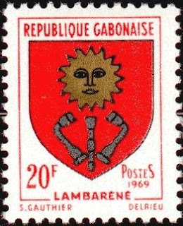 Nous restons en Afrique, après la précédente et première escale philatélique et héraldique à Madagascar (voir → ICI).Nous allons nous transporter dans ce qui est certainement le pays africain le plus prolifique sur le thème de l'héraldique sur timbres: le Gabon.