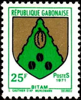 En effet ce n'est pas moins d'une soixantaine de timbres différents qui ont été émis depuis l'indépendance du pays en 1960. La grande majorité sont des petits formats, très similaires par la forme et le graphisme, à la longue série des blasons des provinces et villes françaises (voir→ ICI). Il est évident qu'il y a eu un transfert sinon de compétences, au moins de techniques de fabrication depuis l'Imprimerie nationale française des timbres-poste, installée à l'époque, boulevard Brune à Paris, vers l'imprimerie Delrieu, basée elle aussi à Paris. Cette société privée a réalisé une grande partie des timbres-poste en héliogravure pour le Gabon jusqu'en 1984.