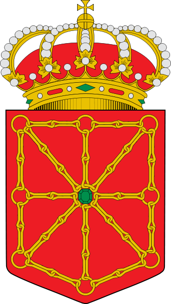 Communauté forale de Navarre : De gueules aux chaînes d'or posées en orle, en croix et en sautoir, chargées en cœur d'une émeraude au naturel. Timbre : couronne royale fermée.