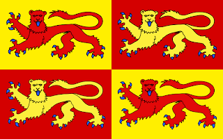 | deuxième drapeau créé en 1998, la couleur bleu ciel a été abandonnée pour du bleu outremer. |