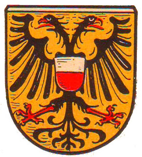 L'aigle impériale a été remplacée par un double vol d'aspect moins germanique ! l'écusson de la Ligue hanséatique dont Lübeck est la ville principale, a lui, par contre été bien conservé.