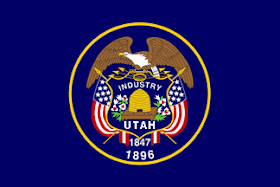 - Le drapeau de l'État de l'Utah a été adopté en 1913 et se compose des armoiries de l'État de l'Utah entourées par un cercle d'or sur un fond bleu marine foncé. A noter que la couleur du bouclier est également passée du bleu au blanc récemment en 2011.