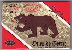 boîte de chocolat aux armes de Berne, commercialisée par la maison Camille Bloch SA à Courtelary (Jura bernois)