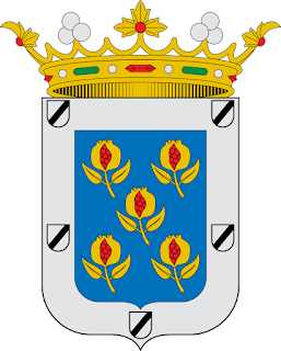 ○ Blason: écartelé au premier : de Castille, au deuxième : de León, au troisième d'argent à la croix de Calatrava de gueules; au quatrième de gueules à la masse et au marteau de mineur d'or, mis en sautoir; sur le tout, en abîme, un écusson ovale d’azur à trois fleurs de lys d'or, bordé de gueules".
