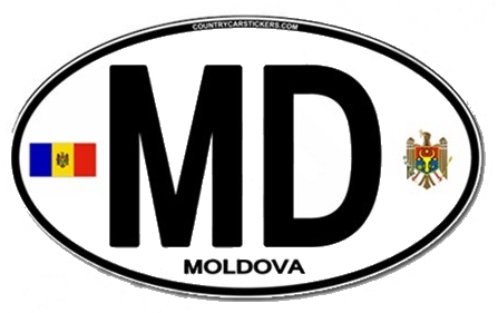 Le nom de la Moldavie vient de l'allemand ancien "mulde" qui signifie "terrain creux, carrière, mine", et qui a successivement désigné une cité minière (aujourd'hui Baia, en Roumanie), la rivière Moldova passant à côté, et pour finir une principauté née dans cette région. Ce nom désigne le territoire de l'ancienne Principauté de Moldavie (1359-1859) aujourd'hui partagé entre la Roumanie, l'Ukraine et bien sûr la République de Moldavie. La Principauté de Moldavie est passée au XVIe siècle sous souveraineté de l'Empire Ottoman, puis de la Transylvanie. En 1812, l'Empire russe annexe la Moldavie actuelle et en fait une province sous le nom de "Bessarabie" , qu'elle perd suite à la Guerre de Crimée en 1856 et qu'elle récupère en 1878 jusqu'à la Révolution de 1917. Après un court essai d'indépendance et l'union à la Roumanie, une partie de la Moldavie russophone est annexée, puis la totalité intégrée en 1940 dans l'U.R.S.S jusqu'à la chute de celle-ci en 1991, où elle obtient cette fois l'indépendance définitive.- Les armoiries de la République de Moldavie, adoptées en 1990, se composent d'une aigle stylisée de couleur naturelle portant une croix orthodoxe d'or dans son bec de gueules, et dans ses serres également de gueules : une branche d'olivier au naturel à dextre et un sceptre d'or à senestre. L'aigle soutient un écu coupé cousu de gueules et d'azur chargé d'un rencontre de bœuf auroch (Bos primigenius) d'or, accompagnée d'une étoile à huit branches en chef, d'une rose quintefeuille en pointe à dextre, d'un croissant contourné en pointe à senestre , et deux losanges couchés en guise d'oreilles, brochant sur le coupé, le tout d'or. L'écu est bordé d'un filet d'or. Ce blason est inspiré des armes historiques de l'ancienne Principauté médiévale de Moldavie (voir historique... plus bas) Ci-dessous, les armoiries version militaire, comme ici les gardes-frontières montrent l'aigle aux ailes déployées mais abaissées, et tenant une hache d'armes et une clé dans ses serres.