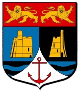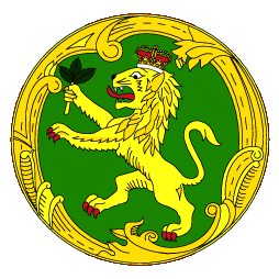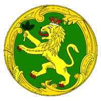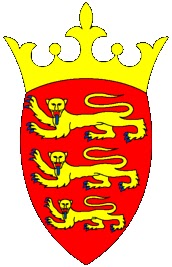 - Le blason d' Aurigny est : "de sinople, au lion d'or, lampassé et armé de gueules, couronné de la couronne de Saint Édouard, tenant dans sa patte dextre un rameau de genêt au naturel". La couronne de Édouard le Confesseur, un des premiers rois d'Angleterre, est transmise et est encore utilisée par les monarques britanniques lors de leur couronnement. En héraldique elle consiste d'un cercle d'or incrusté de pierres précieuses, composée de huit fleurons (mais seulement cinq visibles), elle est fermée par les tiges ornées de perles et avec une croix au sommet.