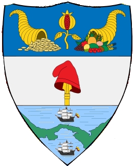 Description du blason : écu en tiers-point "tiercé en fasce : en chef d'azur à la grenade d'or ouverte de gueules, accostée par deux cornes d'abondance d'or affrontées, celle de dextre déversant des pièces d'or, celle de senestre avec des fruits au naturel; au centre : d'argent au bonnet phrygien de gueules coiffant un fer de lance d'or placés en pal; en pointe à l'Isthme de Panamá de sinople séparant deux mers d'azur, en chef et en pointe, avec chacune un navire sous voiles voguant au centre";