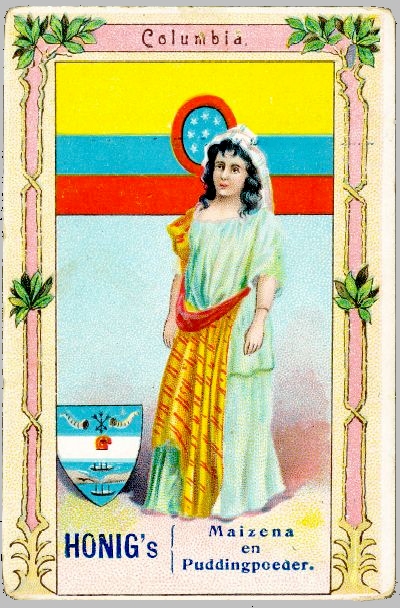 | carte publicitaire néerlandaise, vers 1905 avec le drapeau marchand des États-Unis de Colombie (1861-1890) |