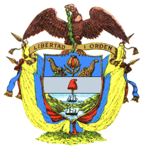 - Les armoiries actuelles de la Colombie ont été adoptées le 17 mai 1924. Mais elles tiennent leur origine pour les éléments constitutifs, avec beaucoup de modifications, dans celles créées et approuvées par la loi 3 du 9 mai 1834, signée du général Francisco de Paula Santander, président de la République de Nouvelle-Grenade.
