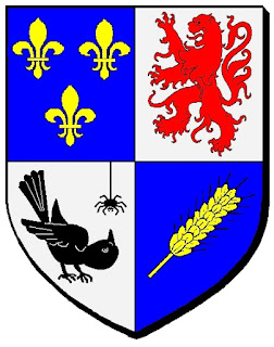 | armoiries de la commune de Paillart ( France - département de l'Oise) le troisième quartier fait sans doute référence à une légende locale qui mériterait des explications. (source documentaire : armorialdefrance .fr ) C'est à ma connaissance le seul blason municipal de France où apparait une araignée ! et elle est plutôt amusante ici ... |