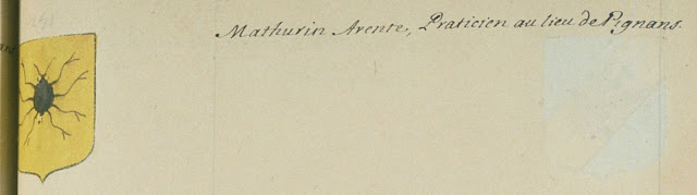 | armes parlantes attribuées au sieur Arente - Armorial Général de France , registre n°29 - Généralité de Provence - volume I, page 953. |