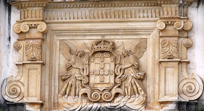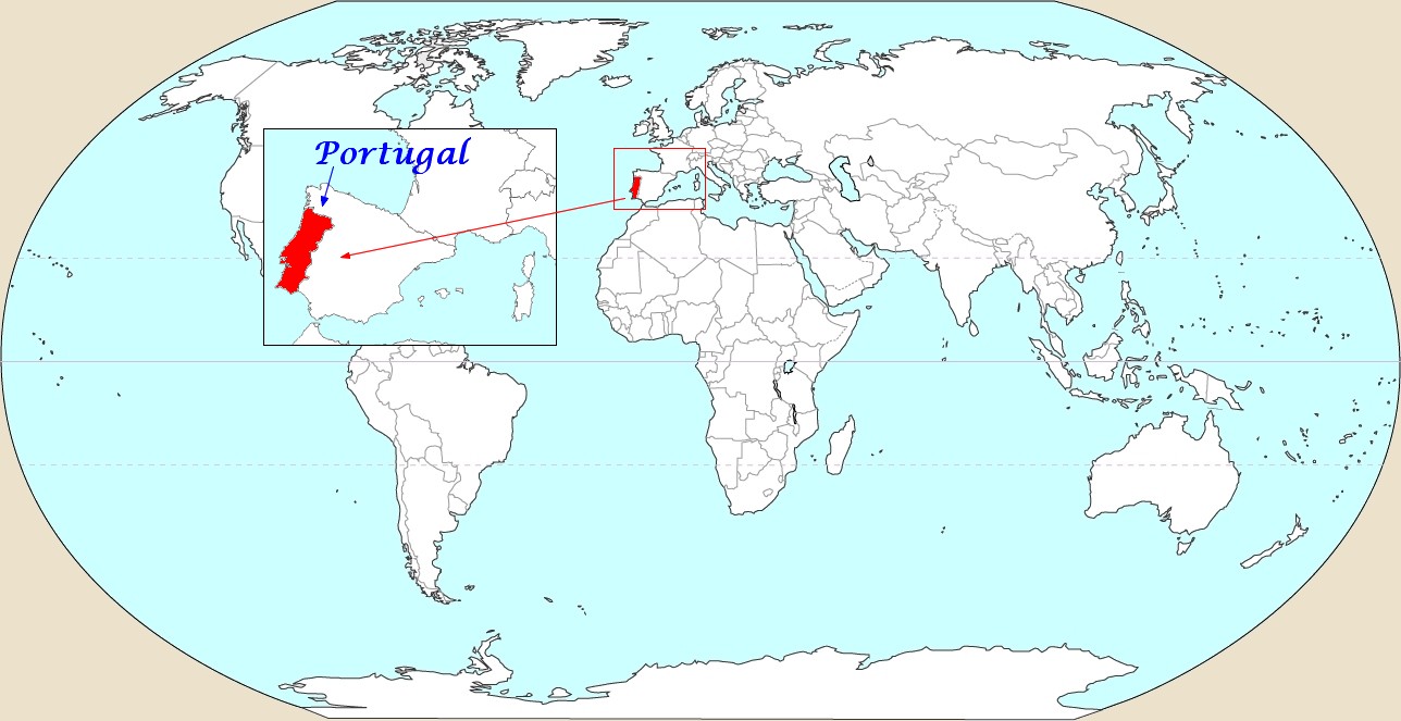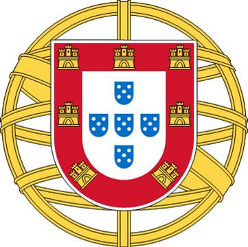 Le nom du Portugal vient de Portus Cale, nom d’une place forte romaine en Lusitanie (ancien nom romain du Portugal), située à l’embouchure du Douro, à l'emplacement de la grande cité actuelle de Porto et qui donna son nom au premier comté chrétien créé dans la région (Condado Portucalense). De ce petit comté, le Portugal a été érigé en Royaume au XIIe siècle et est devenu petit à petit la plus grande puissance mondiale du XIVe au XVIIe siècle en concurrence avec l'Espagne (Castille). Par l'entremise de ses fantastiques navigateurs-explorateurs ( Dias, Vasco de Gama, Magellan, Cabral, etc..), le petit (par la taille) pays s'est retrouvé à la tête d'un empire colonial considérable, présent sur tous les continents. Mais tous les empires déclinent un jour et aujourd'hui le Portugal est à la peine dans la crise économique mondiale, ses possessions sont toutes devenues des états indépendants aux XIXè et XXè siècles, et souvent avec des guerres. Il n'empêche que son rayonnement ancien est encore très présent partout dans le Monde, dans les noms de lieux, dans les traditions populaires et les langues locales et dans l'architecture civile, militaire ou religieuse.- Le blason du Portugal a été adopté officiellement le 30 juin 1911 (1ère République) et reprend celui de la monarchie, mais sans la couronne ni les ornements de celle-ci. Description : écu d'argent à cinq écussons d'azur, disposés en croix, chargés chacun de cinq besants d'argent placés en sautoir, et une bordure de gueules chargée de sept châteaux d'or, trois sur le chef, deux sur les flancs et deux vers la pointe, le tout soutenu par une sphère armillaire d'or.