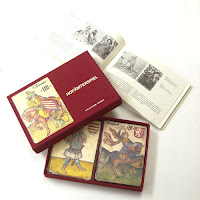 Voici donc un magnifique jeu de 48 cartes qui nous vient du XVe siècle. Il présente en même temps des personnages contemporains de cette période, avec leur fonction à la Cour royale, leur habillement de l'époque, et les armoiries de quatre grands royaumes européens: