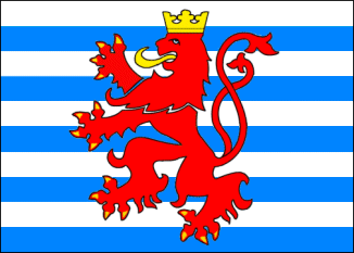 - Officiellement le drapeau d'état du Luxembourg n'a été adopté qu'en 1972, avec une loi amendée en 1993. Évidemment il est utilisé depuis bien longtemps avant cette date (depuis le XIIe siècle) mais personne n'avait pensé à le définir légalement et l'inscrire dans un acte officiel d'état ( voir →◙) Il est constitué de trois bandes égales rouge, blanche et bleue ciel disposées horizontalement. Il est similaire au drapeau des Pays-Bas qui est moins large et utilise un bleu plus foncé (bleu outremer). Vous avez bien noté que la couleur bleu ciel est définie comme telle, chose impensable pour les règles sur les couleurs en héraldique qui n'acceptent pas la notion des nuances ! Ci-dessous à droite : le drapeau d'enseigne civil et maritime est inspiré directement des armoiries nationales. Et encore en dessous, voici le drapeau personnel du Grand-Duc avec ses armoiries : écartelé de Luxembourg et de Nassau.