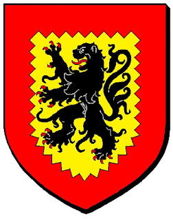 ○ Blason : "De gueules au lion d'or, armé et lampassé d'azur, chargé en coeur d'un écusson d'azur semé de fleurs de lis d'or au lambel de gueules de trois pendants chargés chacun de trois petits châteaux d'or rangés en pal".• voir le petit historique que j'avais réalisé il y a quelques mois → ICI