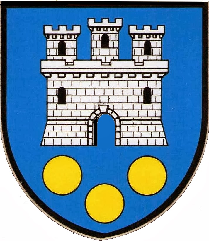 "d'azur à trois tours carrées crénelées de trois pièces (à la Guelfe),